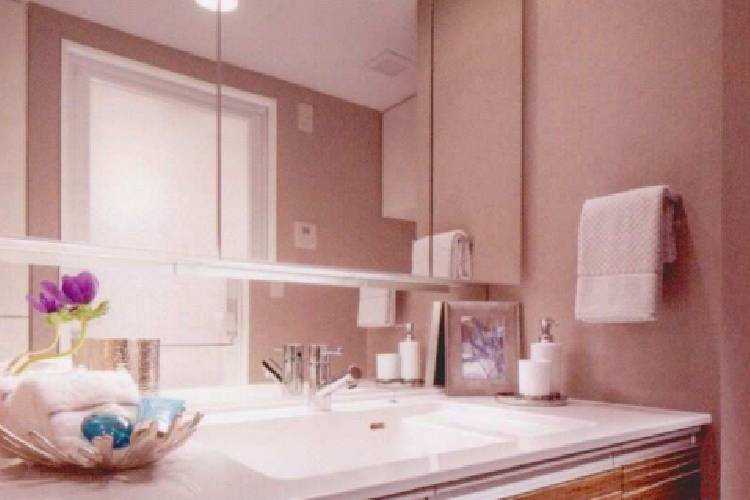 お子様の目線に合わせた三面鏡下鏡を備えた三面鏡付洗面化粧台が採用されています。三面鏡の裏側には収納棚を確保し、スキンケア用品やヘアケア用品などをすっきり整理できます。また収納棚は取り外して掃除ができるため清潔に保てます。